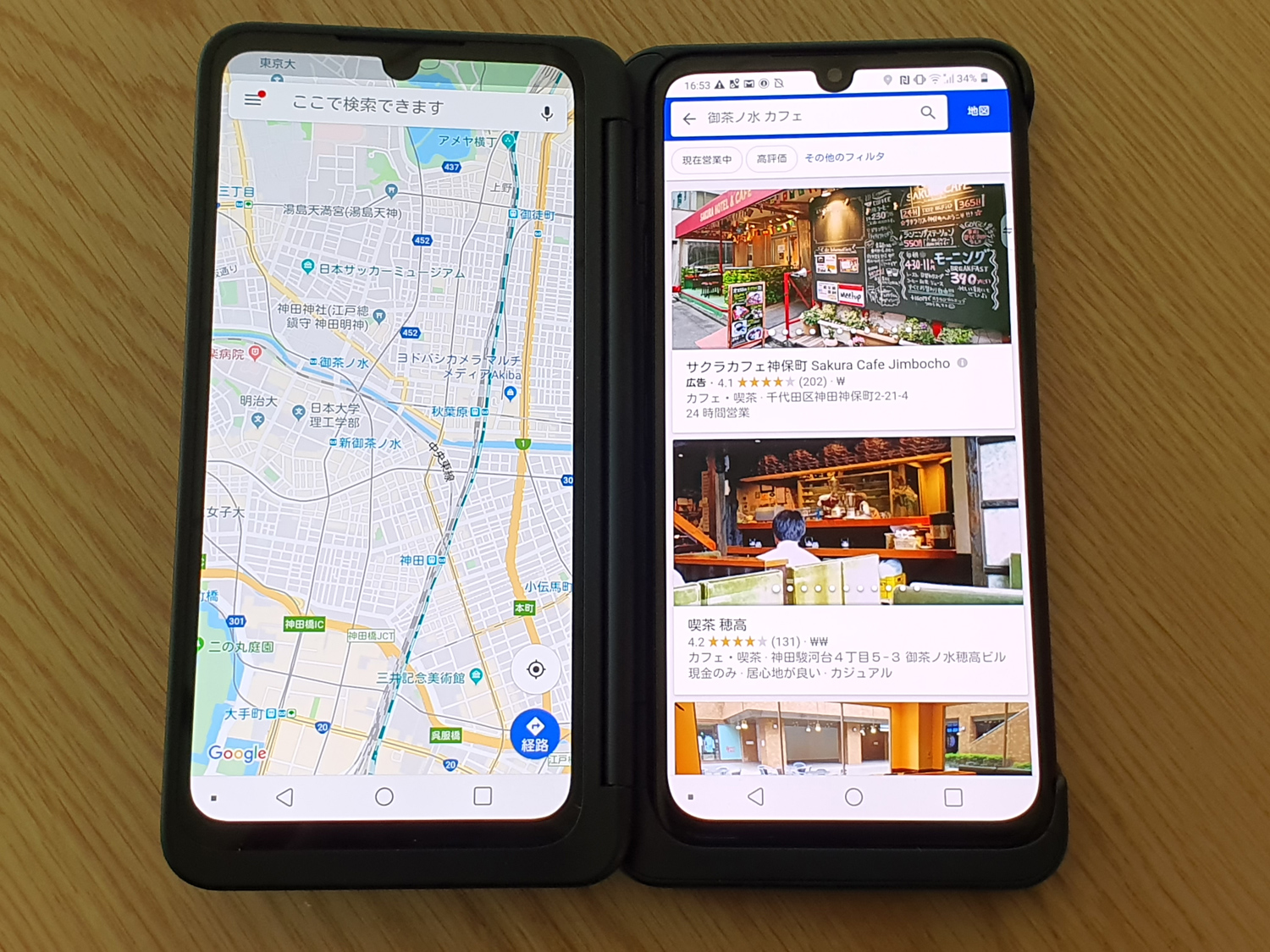 一方、LGの2画面化は2つのアプリを左右の画面それぞれに個別表示して同時に使うことができます。こちらもブラウザなど特定のアプリは2つの画面をフォルダブル端末のように1つの画面として表示することもできますが、真ん中のヒンジ部分が目立ってしまうためあまり実用的ではありません。つまり基本的な使い方は「2つの画面の同時利用」、すなわちマルチタスク、マルチビューとなるわけです。