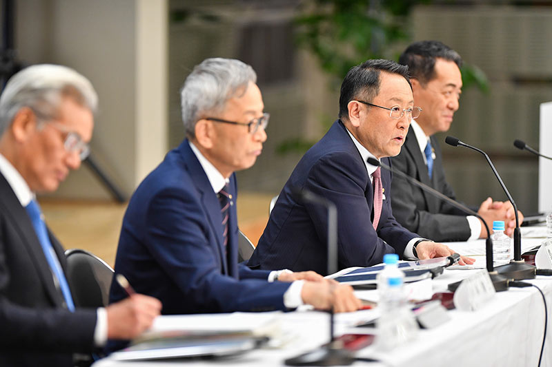 「トヨタらしさを取り戻す」。豊田章男社長(右から2番目)は新体制発表にあわせてこんなメッセージを発表した。