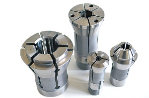 主力製品のコレットチャック。注文ごとに細かく仕様が異なる。半製品で在庫を持ち、注文に合わせて即座に加工し、注文の大半を当日出荷する(写真=栗原克己)