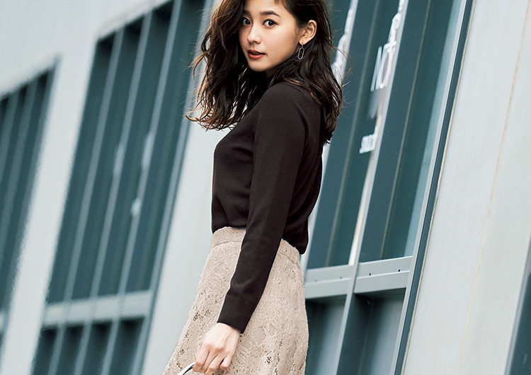 ブラウンのニットとレーススカートで美人見え 色柄でメリハリつけた最旬通勤コーデ - ニコニコニュース